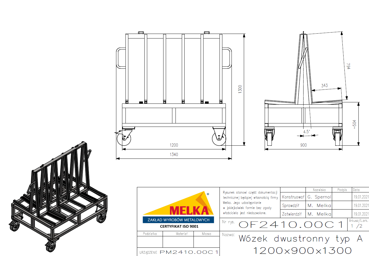 WÓZEK DWUSTRONNY TYP A Z PODWYŻSZONĄ PODSTAWĄ